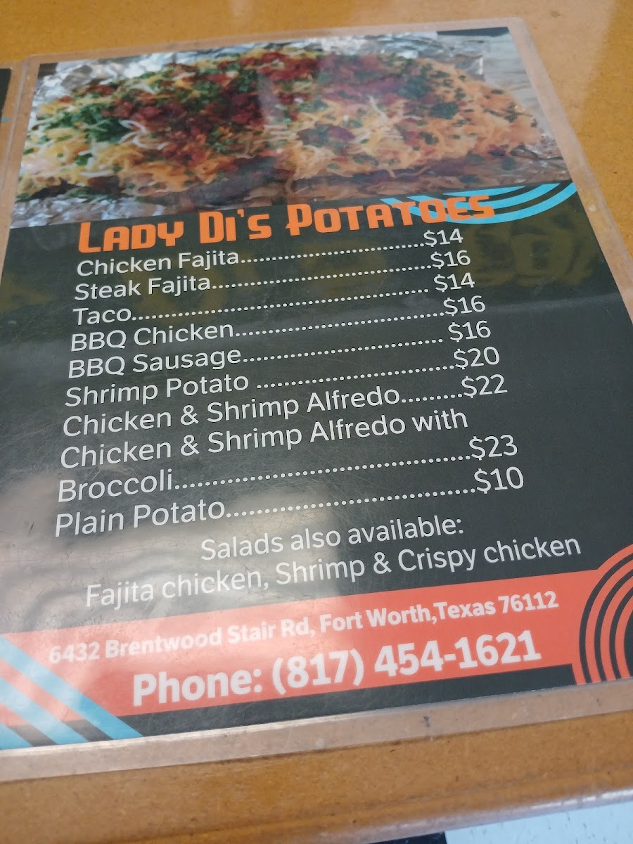 Welcome to Ladydi's Potatoes, the hidden gem located at 6432 Brentwood Stair Rd, Fort Worth, TX. This eatery is a potato lover's paradise, offering a diverse menu that caters to all cravings. From hearty potato bowls like Fajita Steak and BBQ Chicken to savory shrimp alfredo dishes, every plate is crafted with passion and fresh ingredients.
